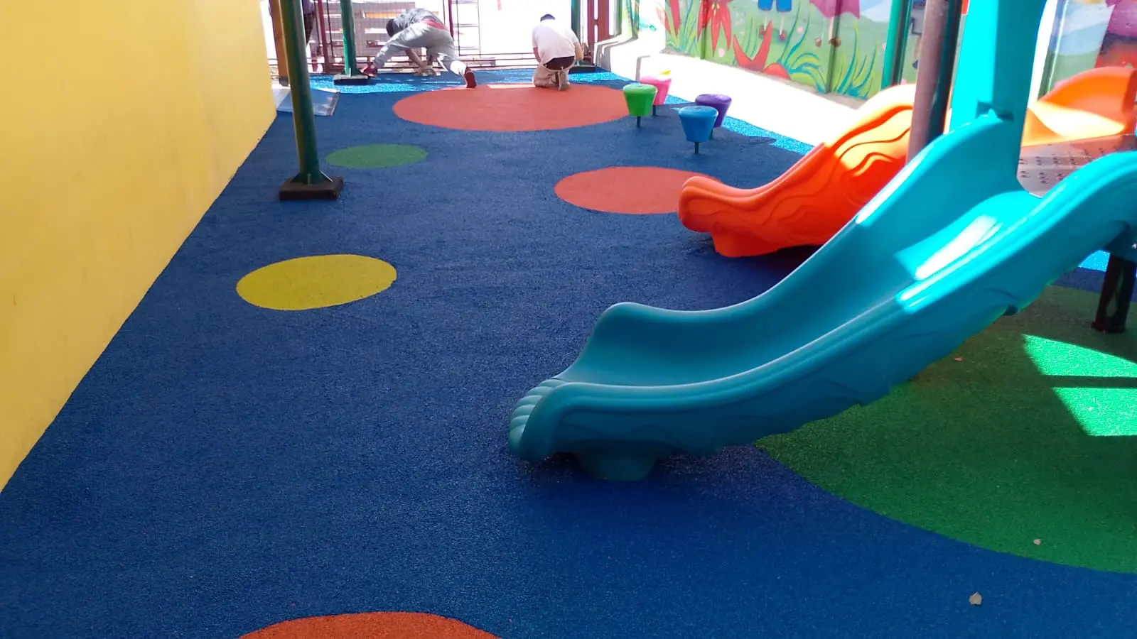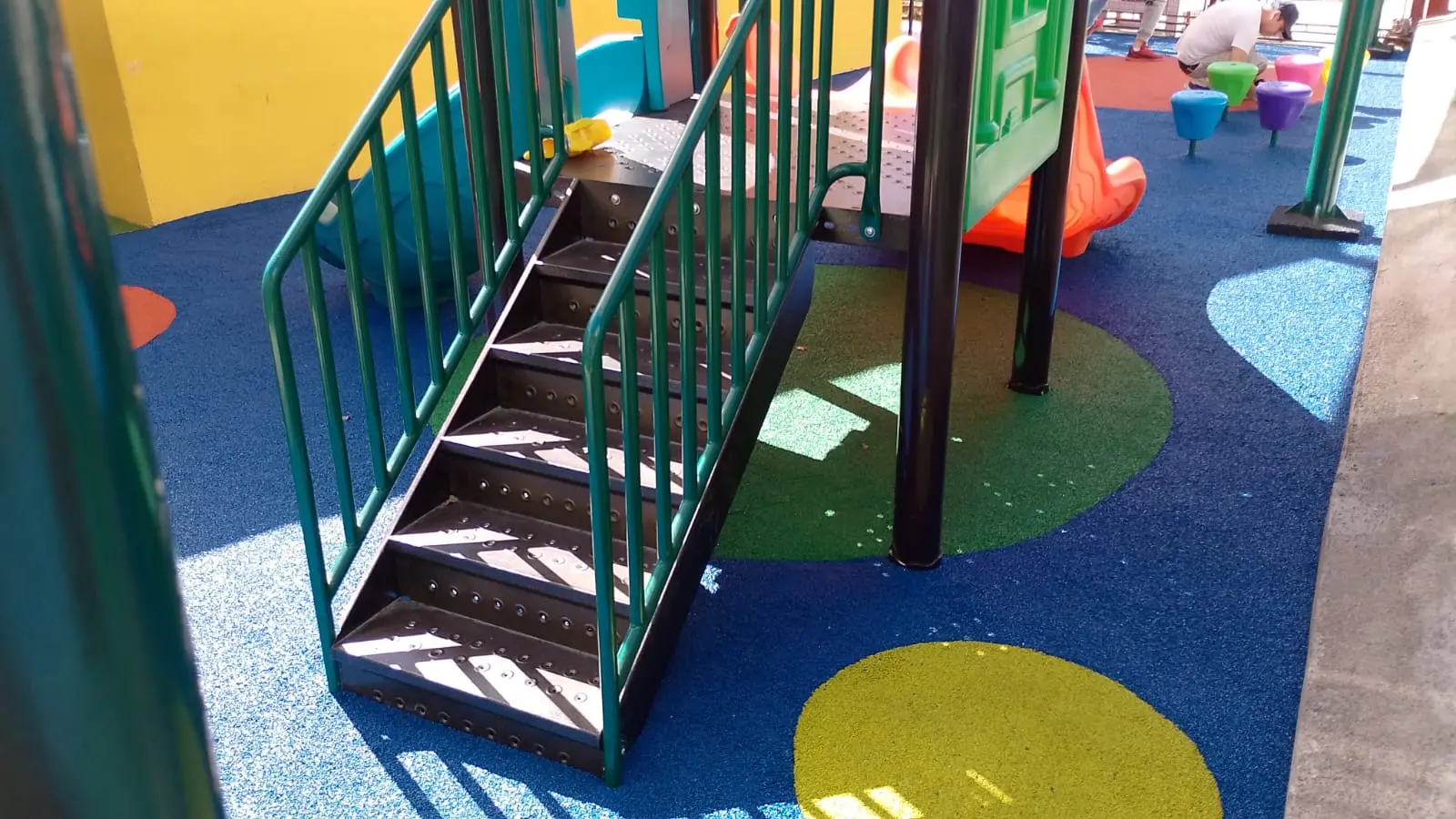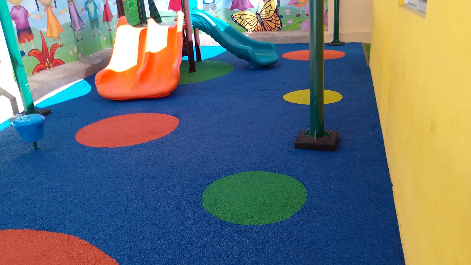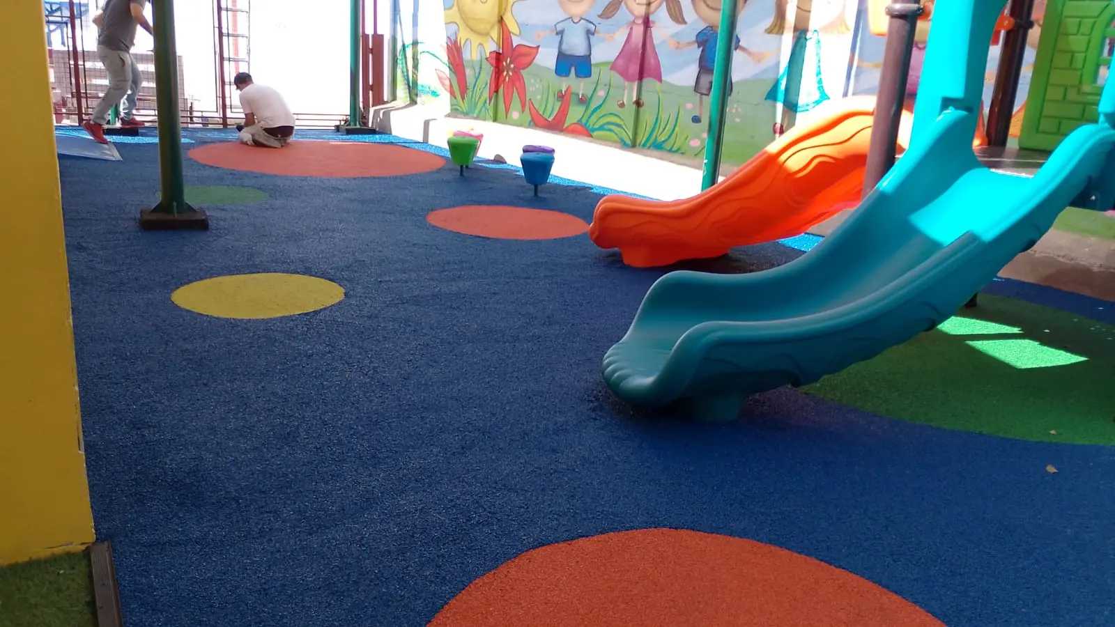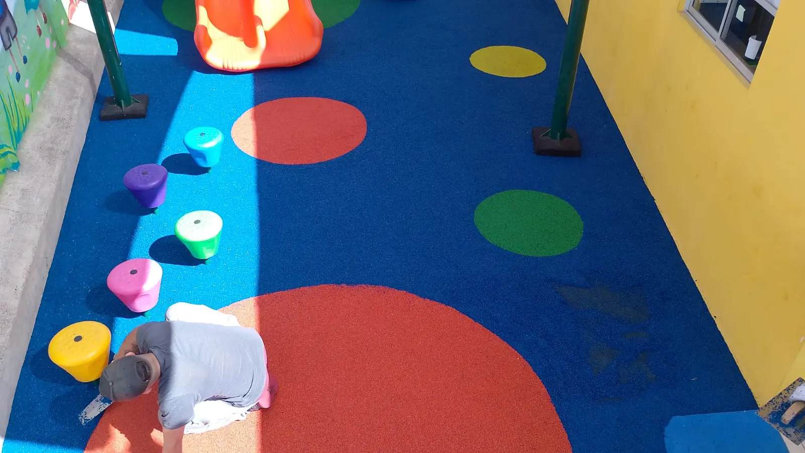 Bajo el cielo de la Región de Coquimbo, la radiación solar es un desafío constante. Por ello, nuestra intervención comenzó con la instalación de toldos vela, que no solo filtran la luz, sino que crean una estética arquitectónica moderna. Pero la verdadera revolución está bajo los pies: un piso de caucho continuo que transforma cada caída en un rebote seguro y cada juego en una experiencia de confort.